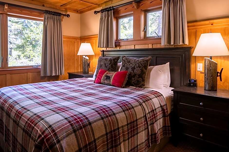 A full kitchen and a full living room featuring a sofa bed and a fireplace are both available in this cabin. An private bathroom and a guest bathroom are provided.